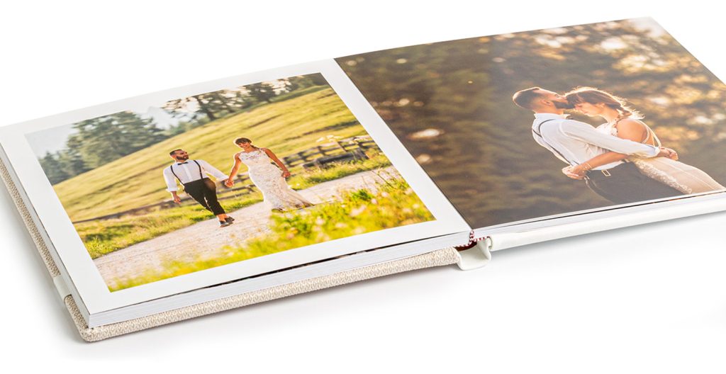 Ogni stampa fotografica viene cordonata, permettendo l’apertura a doppia pagina senza interruzioni centrali. L’impaginazione grafica può estendersi su tutta la superficie, ampliando le possibilità creative.